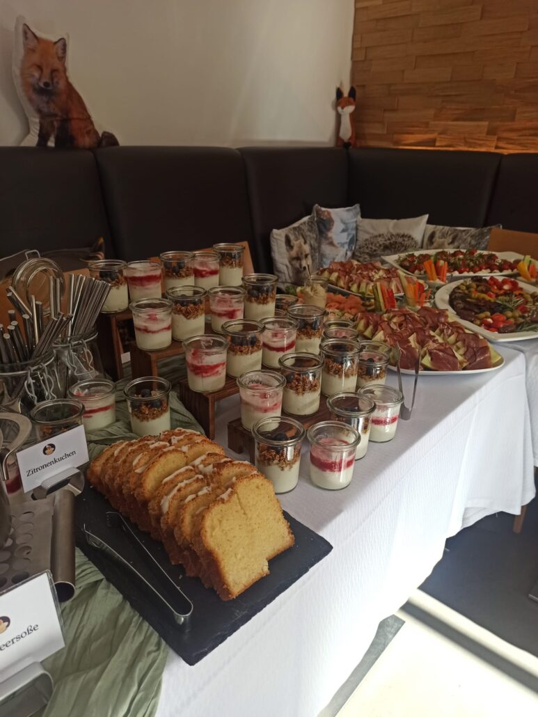 Ab 10:30 Uhr sorgten jazzige Klänge für die passende Atmosphäre, während unser Frühstücksbuffet eröffnet wurde. Die Auswahl reichte von süßen bis zu herzhaften Speisen, sodass für jeden Geschmack etwas dabei war und nach Herzenslust geschlemmt werden konnte.